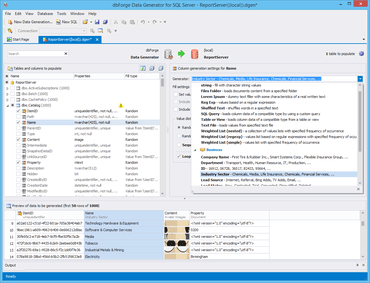 dbForge Data Generator for SQL Serverは、大量のテストデータを生成するためのパワフルなツールです。 あらゆるデータ型に対応しており、テーブルと列の定義、値の範囲の設定、各列のパラメーターのカスタマイズ、生成されるデータのプレビューを行えます。 SQL Serverのテーブルにカスタマイズ可能なテストデータを大量に自動入力できるので、手間と時間を節約できます。